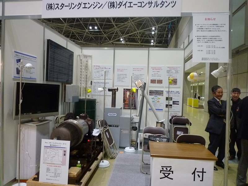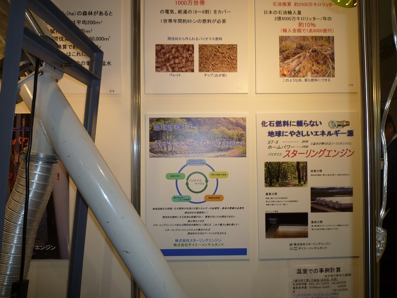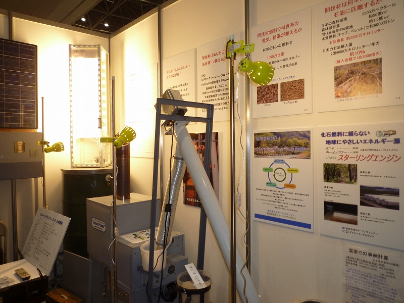 バイオマスサイクルの推進を図り、株式会社スターリングエンジンと当社が共同開発した、バイオマス発電を目指す、3kwスターリングエンジンならびに1Kwのフリーピストンスターリングエンジンを展示しました。