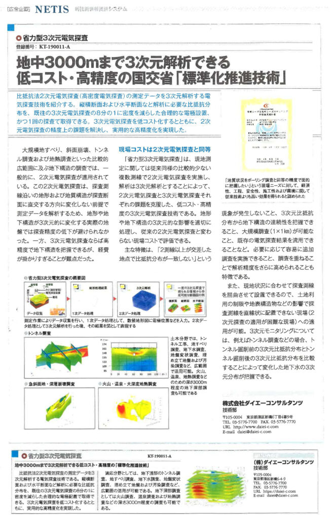 日経コンストラクションに省力型3次元電気探査の広告を掲載