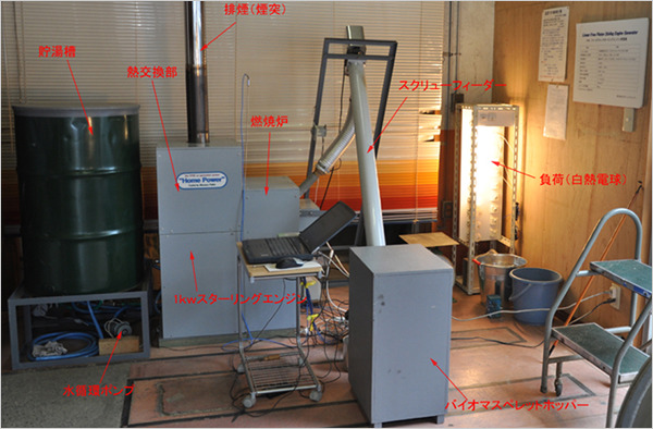 家庭レベルで使用できる木質バイオマスを用いたコージェネシステムが実現でき以下の特徴を有する。