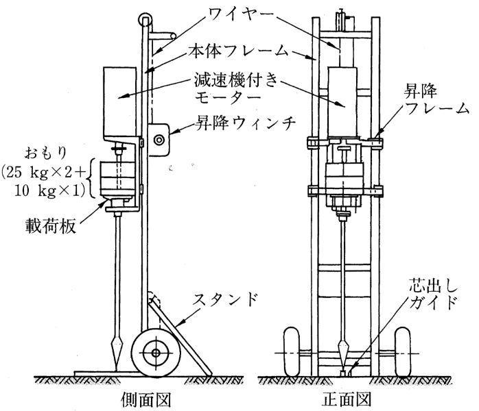 なお、先端抵抗部分の回転や載荷時の抵抗から地盤の強度を簡易的に測定する方法であるため、機械ボーリングのような深部の調査ではなく、浅部の軟弱な土層を対象とした調査に利用されています。